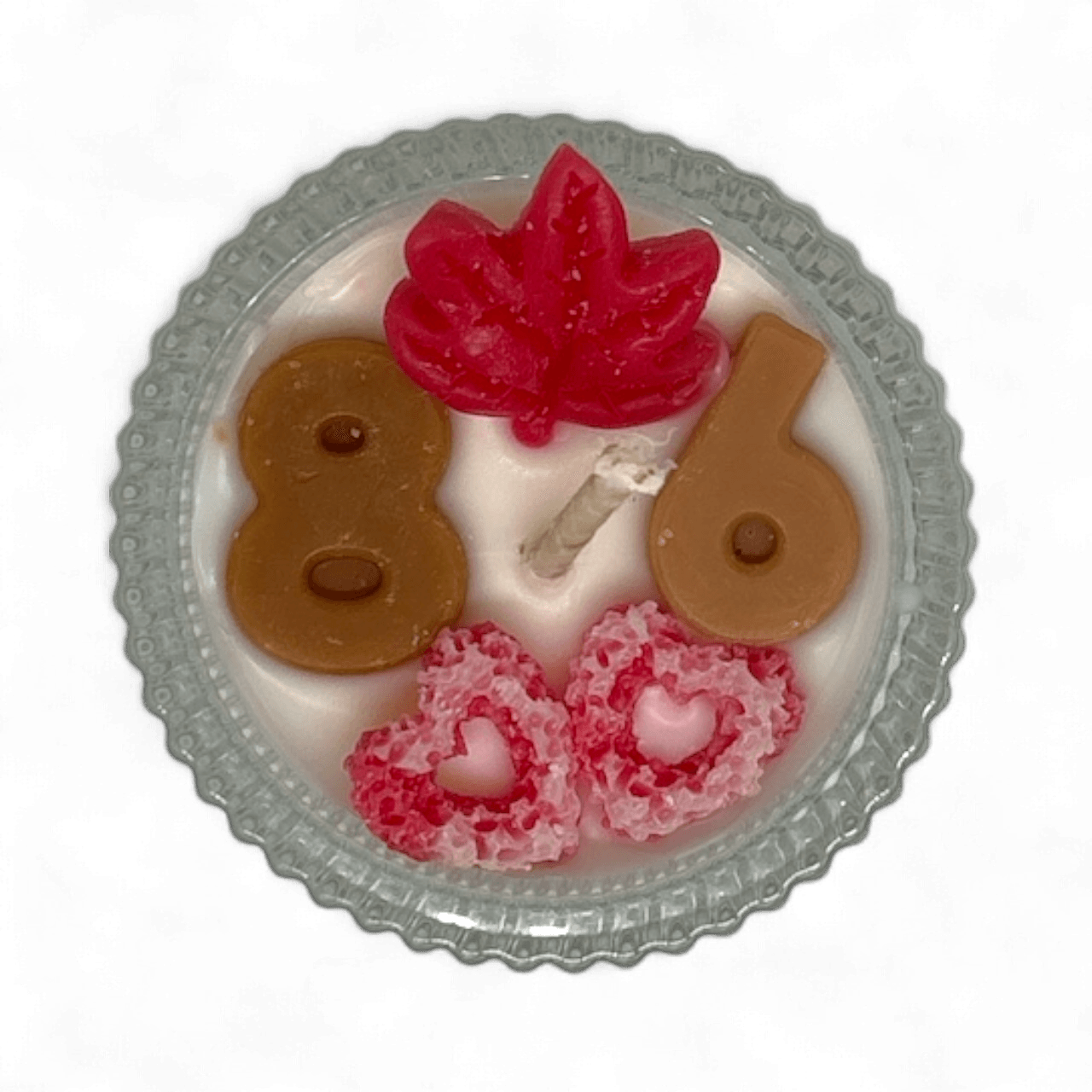 Celebrate love and a special day with Memorable Big Day Tealight Candle, hand-poured with natural soy wax and adorned with wax decorations featuring the date “920”, maple leaves symbolising Canada, and hearts to represent romance and togetherness.